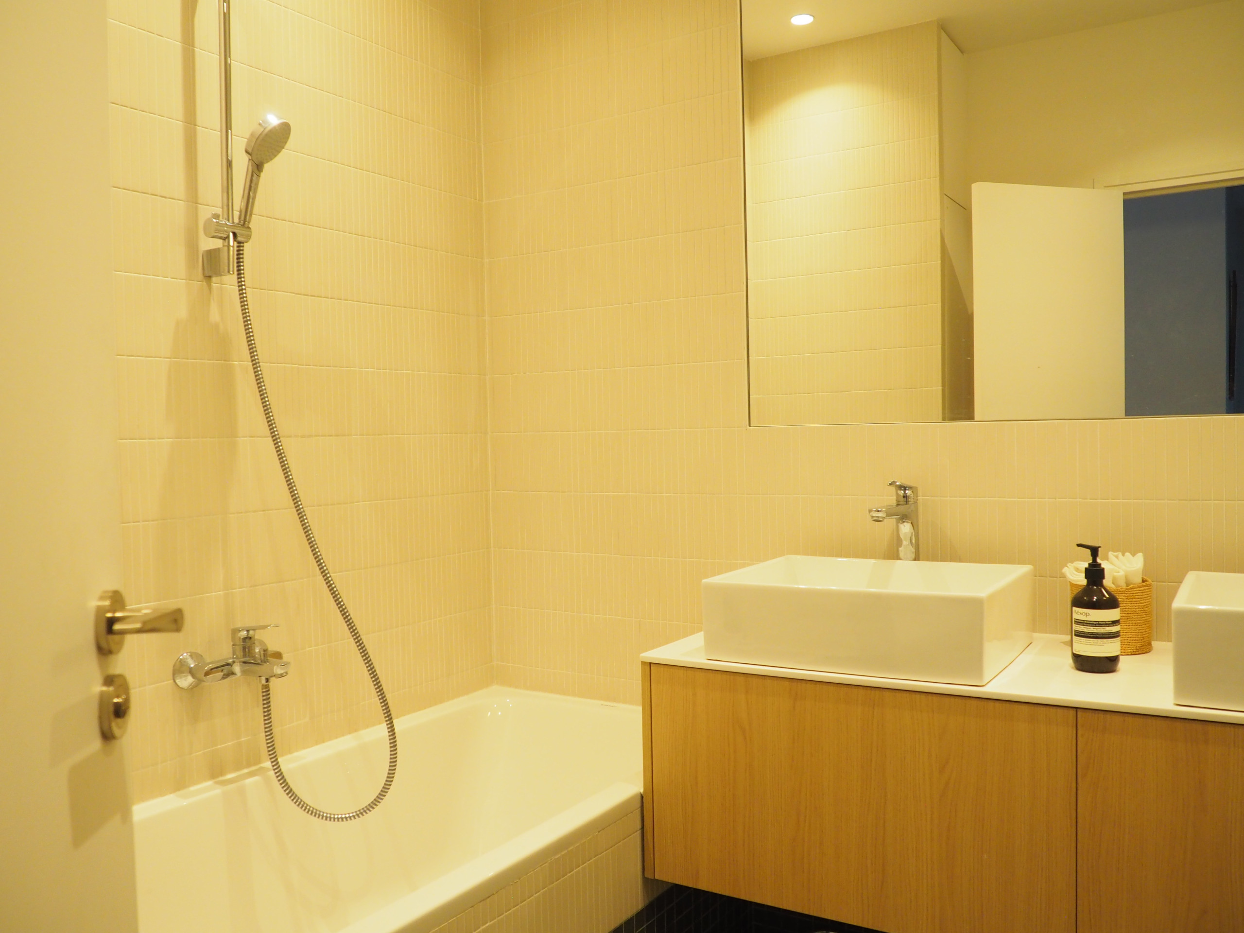 L'appartement dispose de deux chambres avec des lits queen size, permettant d'accueillir confortablement jusqu'à 3 personnes. La salle de bain avec baignoire vous permettra de vous détendre après une journée de découvertes ou de travail. La cuisine indépendante est entièrement équipée avec des appareils modernes : réfrigérateur, lave-linge, four, lave-vaisselle, machine à café, et bien plus encore.